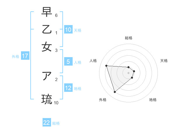 早乙女 ア琉さんを姓名の画数から五運を鑑定