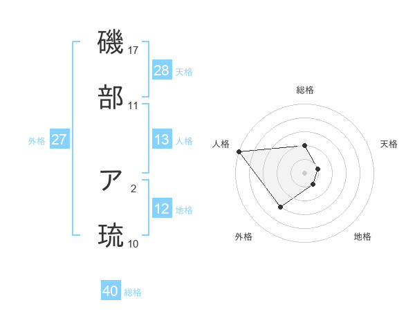 磯部 ア琉さんの総格は40画の2点!