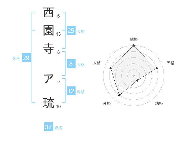 西園寺 ア琉さんの総格は37画の5点!