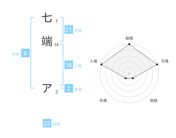 七端 アさんの総格は23画の5点!