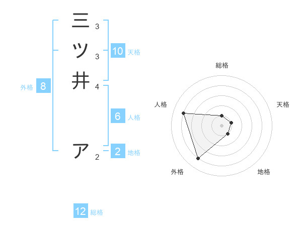 三ツ井 アさんを姓名の画数から五運を鑑定