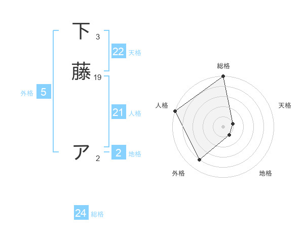 下藤 アさんの外格は5画の4点!
