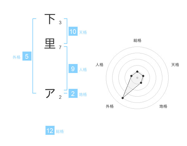 下里 アさんの総格は12画の1点!