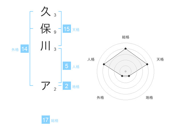 久保川 アさんの総格は17画の4点!