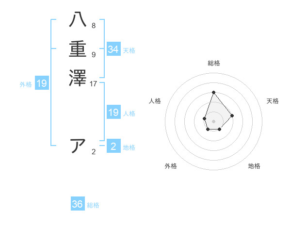 八重澤 アさんの外格は19画の1点!