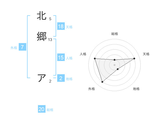 北郷 アさんの総格は20画の1点!