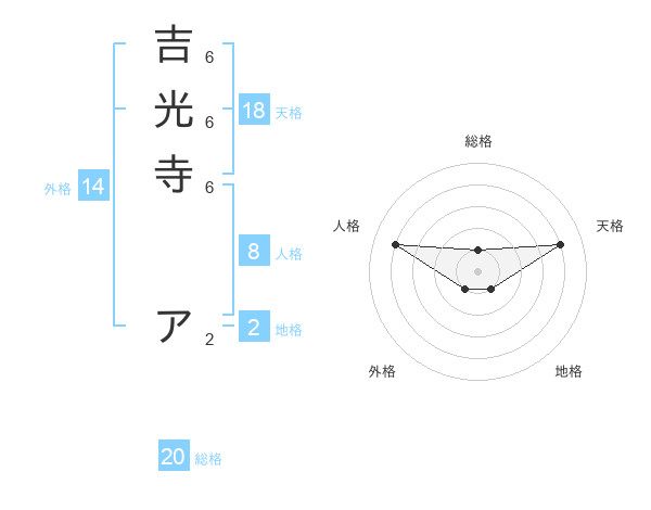 吉光寺 アさんを姓名の画数から五運を鑑定