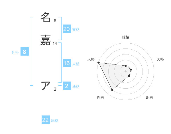 名嘉 アさんの総格は22画の1点!