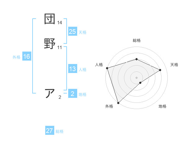 団野 アさんの天格は25画の4点!