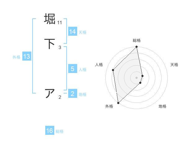 堀下 アさんの総格は16画の5点!