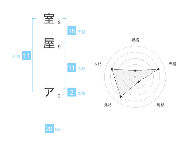 室屋 アさんの総格は20画の1点!