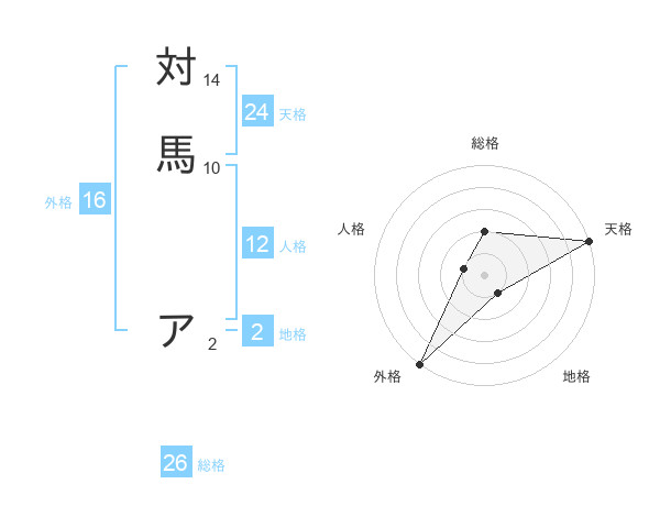 対馬 アさんの総格は26画の2点