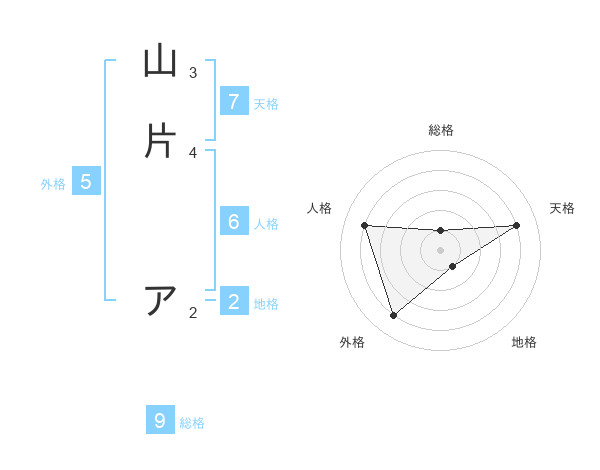 山片 アさんの総格は9画の1点!