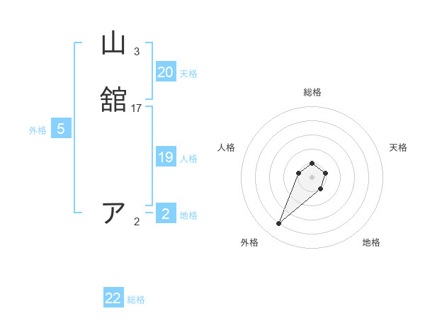 山舘 アさんの総格は22画の1点!