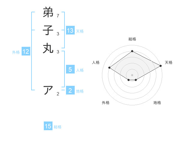 弟子丸 アさんの天格は13画の5点!