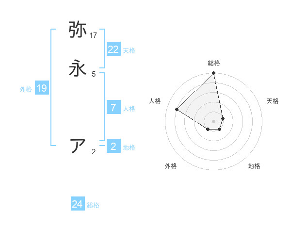弥永 アさんの総格は24画の5点!