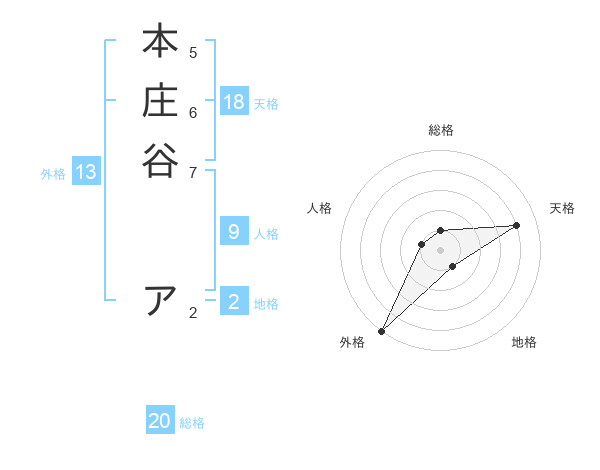 本庄谷 アさんの外格は13画の5点!