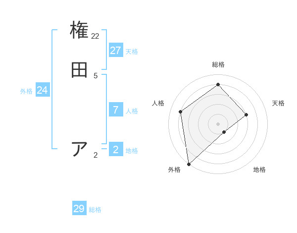 権田 アさんの外格は24画の5点!