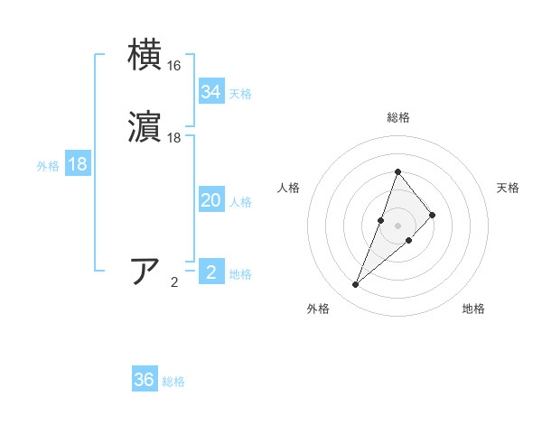 横濵 アさんの総格は36画の3点!