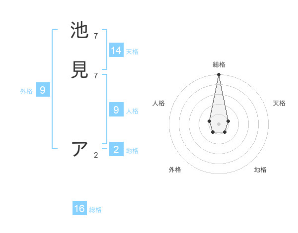 池見 アさんの総格は16画の5点!