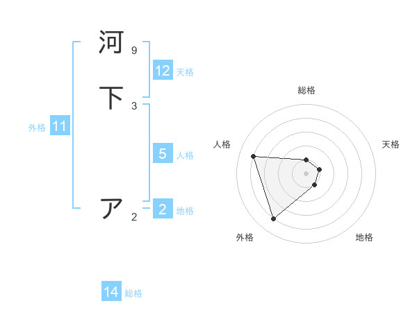 河下 アさんの総格は14画の1点!
