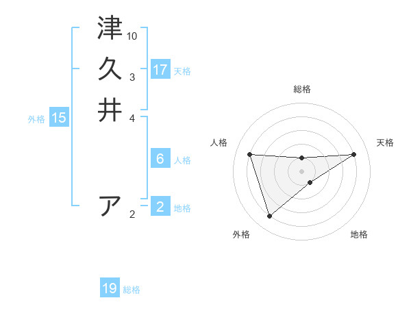 津久井 アさんの総格は19画の1点!
