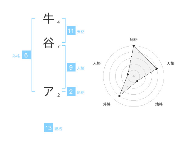 牛谷 アさんの総格は13画の5点!