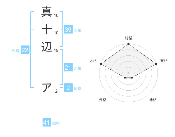 真十辺 アさんの天格は39画の5点!