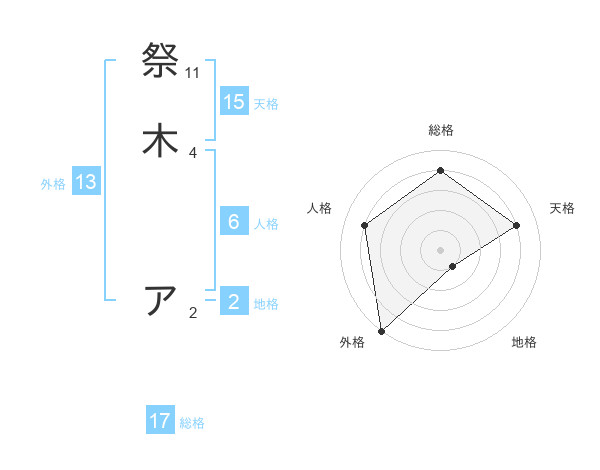 祭木 アさんの総格は17画の4点!