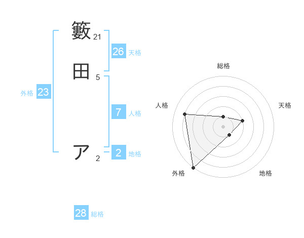籔田 アさんの総格は28画の1点!