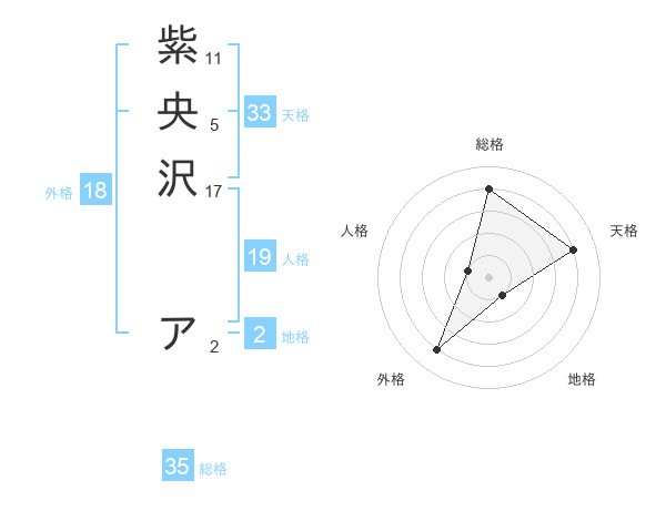 紫央沢 アさんを姓名の画数から五運を鑑定