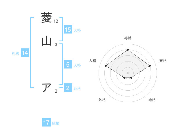 菱山 アさんの天格は15画の4点!