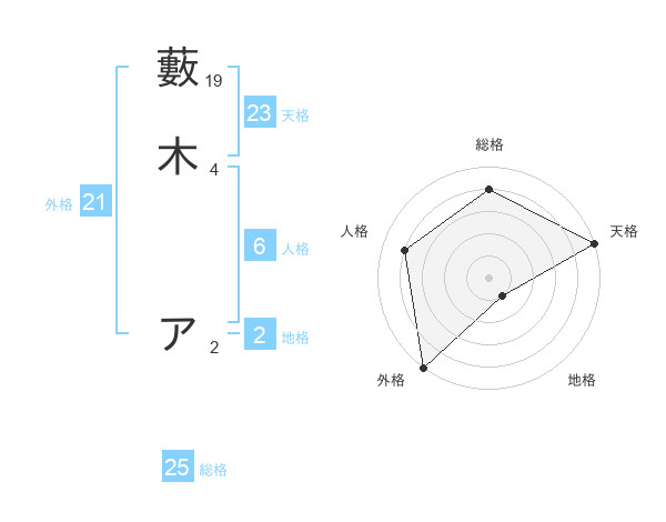 藪木 アさんの天格は23画の5点!