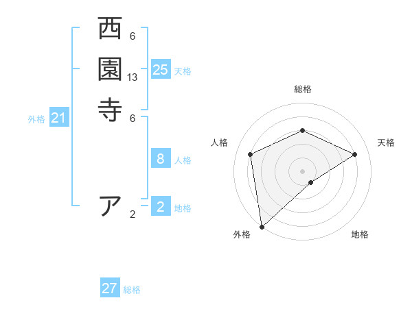 西園寺 アさんの外格は21画の5点!