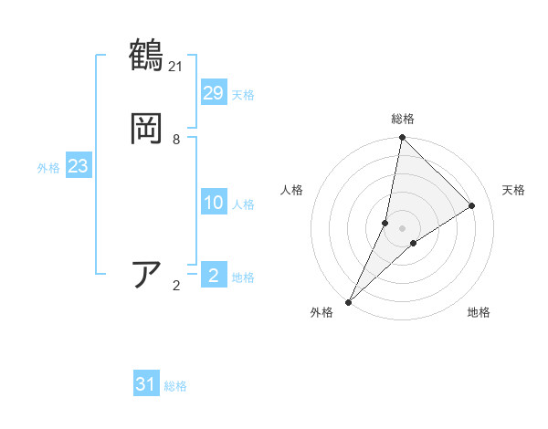 鶴岡 アさんを姓名の画数から五運を鑑定