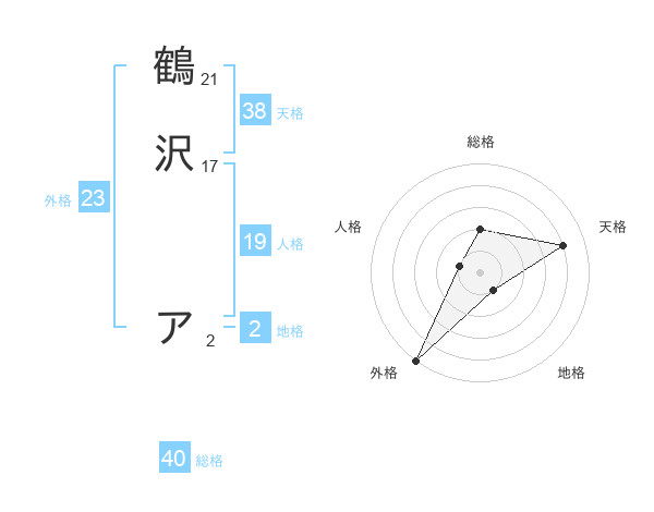 鶴沢 アさんの天格は38画の4点!