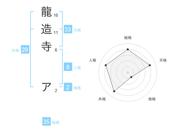 龍造寺 アさんを姓名の画数から五運を鑑定