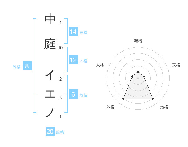 中庭 イエノさんを姓名の画数から五運を鑑定