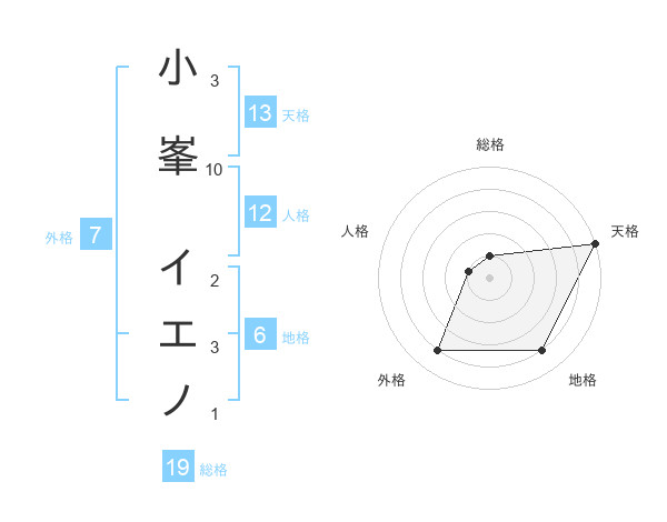 小峯 イエノさんの天格は13画の5点!