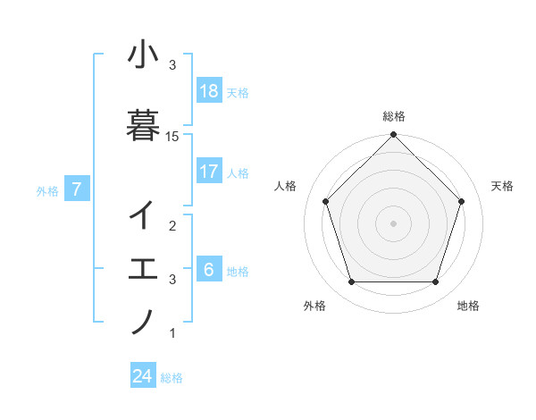 小暮 イエノさんの総格は24画の5点!
