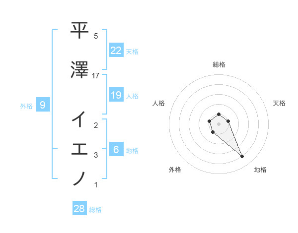平澤 イエノさんを姓名の画数から五運を鑑定
