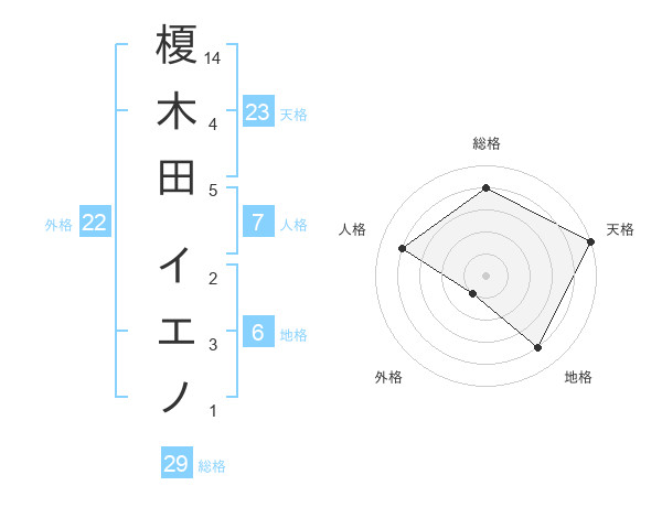 榎木田 イエノさんを姓名の画数から五運を鑑定