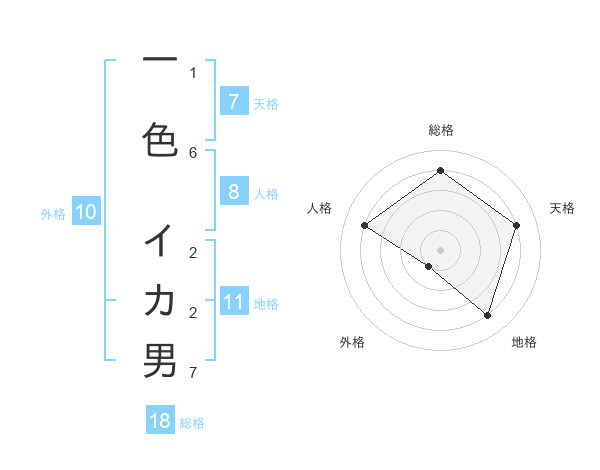 一色 イカ男さんを姓名の画数から五運を鑑定