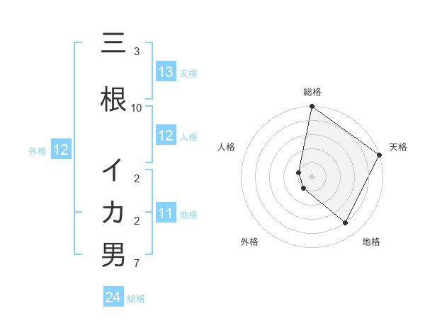 三根 イカ男さんを姓名の画数から五運を鑑定