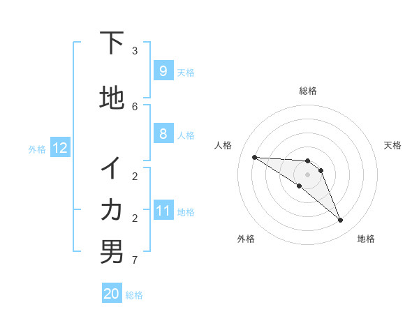 下地 イカ男さんを姓名の画数から五運を鑑定