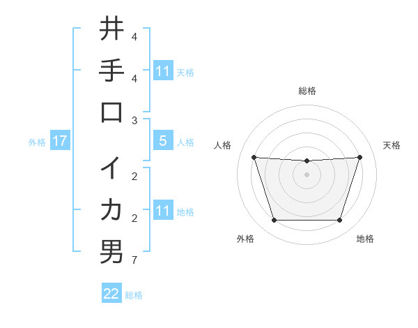 井手口 イカ男さんを姓名の画数から五運を鑑定
