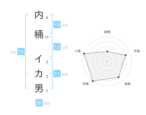 内桶 イカ男さんの外格は13画の5点!