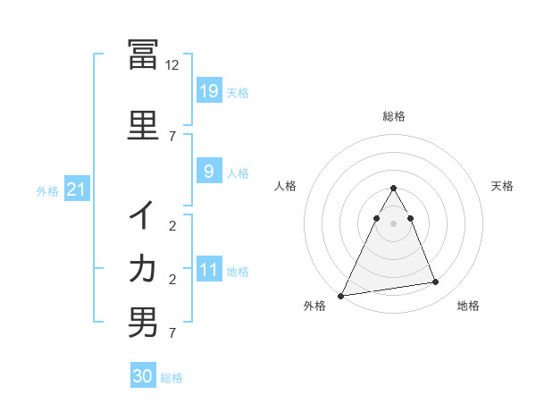冨里 イカ男さんを姓名の画数から五運を鑑定