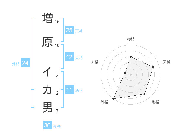 増原 イカ男さんを姓名の画数から五運を鑑定