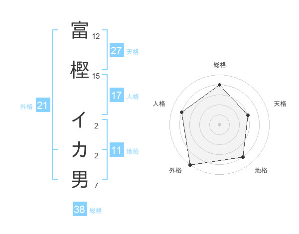 富樫 イカ男さんを姓名の画数から五運を鑑定